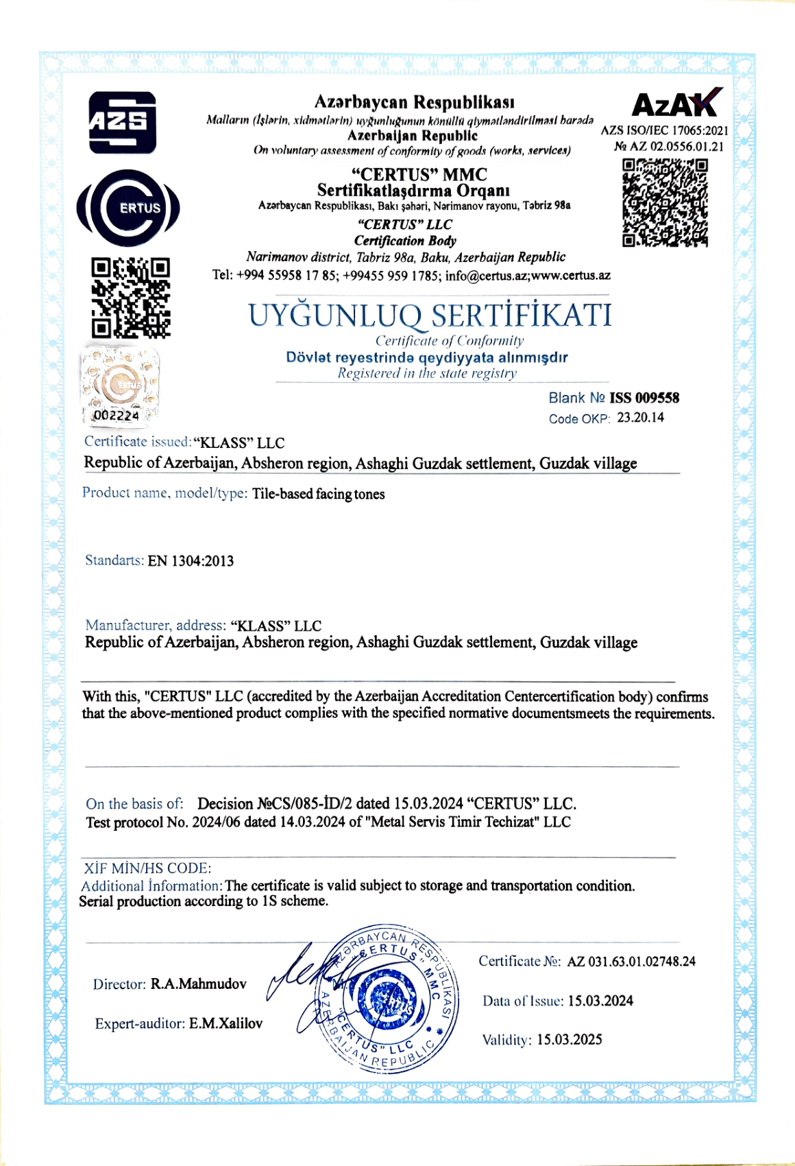 Сертификаты соответствия